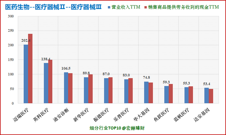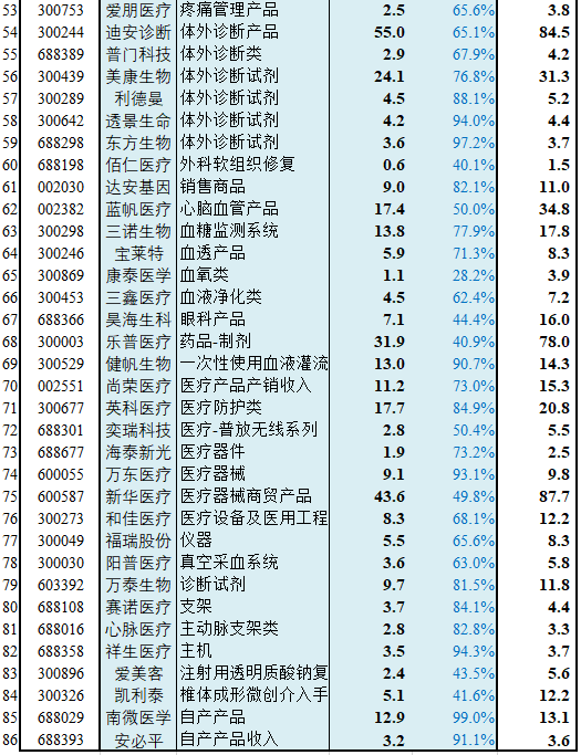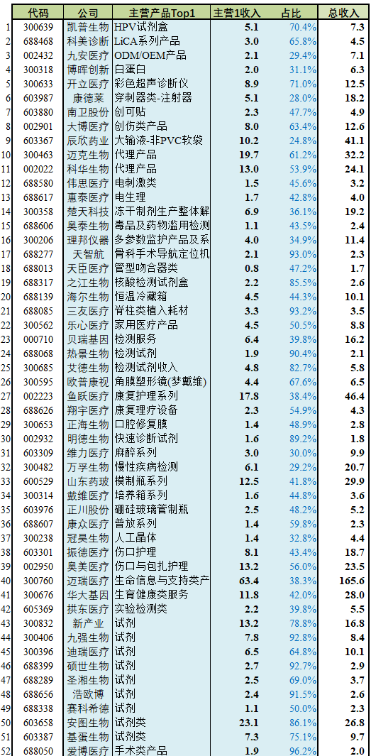 营收TOP3为:迈瑞医疗202.4亿、英科医疗138.4亿、迪安诊断106.5亿。