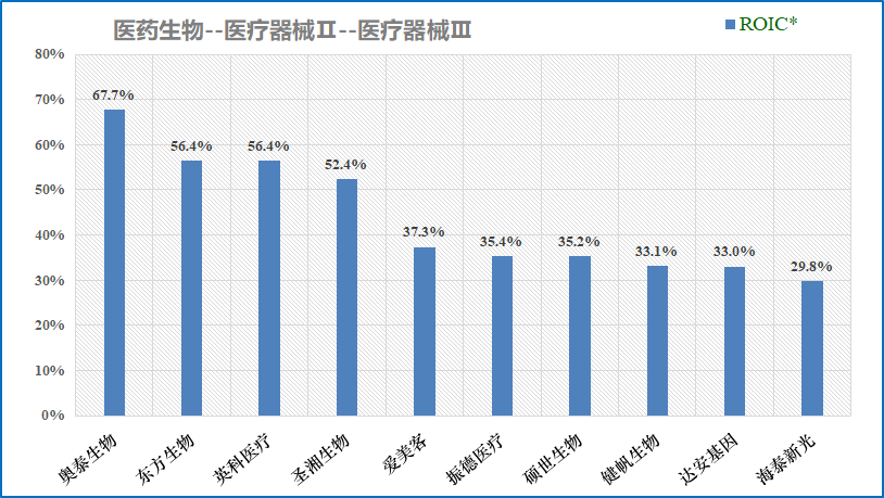 ROIC三强:奥泰生物67.7%、东方生物56.4%%、英科医疗56.4%。