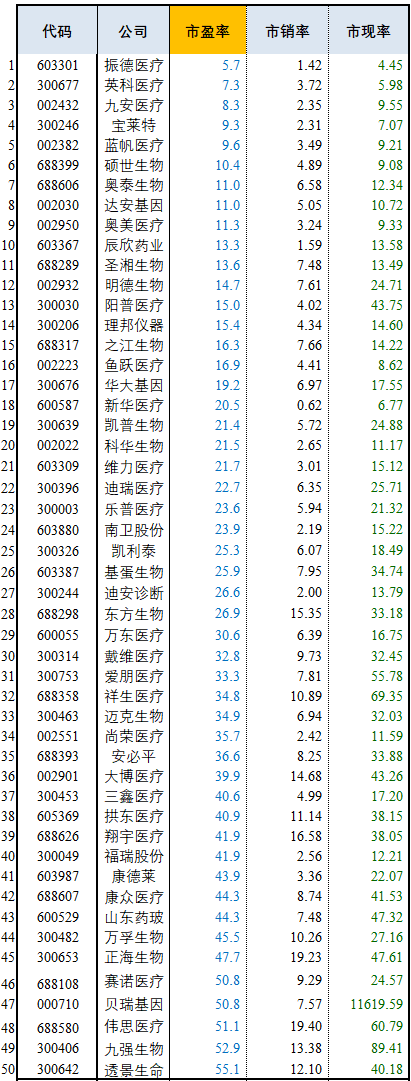 注:按市盈率升序排序,剔除负值;各比率均为TTM值