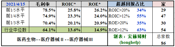 ROIC*前1/3水平:20.1%;前1/5水平:25.8%