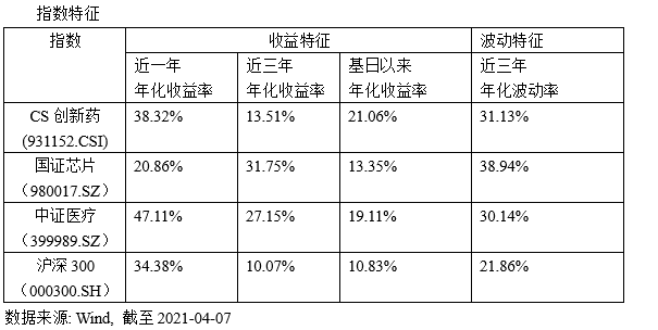 相比沪深300指数,CS创新药、国证芯片和中证医疗无论是基日以来还是近三年的年化收益率均更高,波动性也更大。