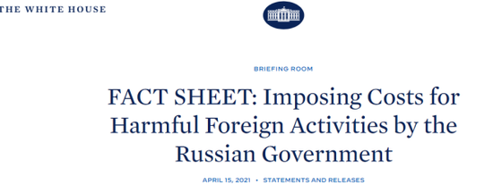 根据白宫声明,美国财政部发布指令,自2021年6月14日起禁止美国金融机构参与以卢布或非卢布计价的俄罗斯主权债券一级市场;美财政部还制裁了32家实体和个人,并声称 “这些实体和个人在俄政府指导下试图影响2020年美国总统选举,以及其他虚假信息和干预行为。”