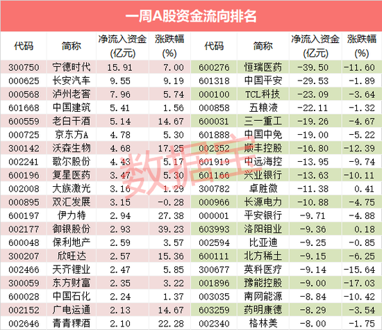 哪些股票获主力资金大手笔抢筹?数据显示,宁德时代、长安汽车、泸州老窖、中国建筑、老白干酒等股本周净流入额超5亿元,特斯拉概念龙头宁德时代主力资金净流入额最高,达到15.91亿元,该股本周上涨7%。宁德时代间接控股公司邦普时代前几日牵手洛阳钼业,宣布联手打造世界级铜钴项目,昨日晚间又出现在天华超净——防静电超净技术领域龙头公布的定增名单之中,获配金额为1.2亿元。