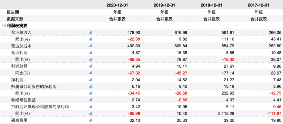 或受疫情冲击,进入2020年,均胜电子陷入营收净利润双降局面。据财报数据披露,该公司2020年营业收入同比下降22.38%至478.90亿元;归母净利润较上一年同期缩水超3亿元,仅有6.16亿元,同比降幅34.45%。