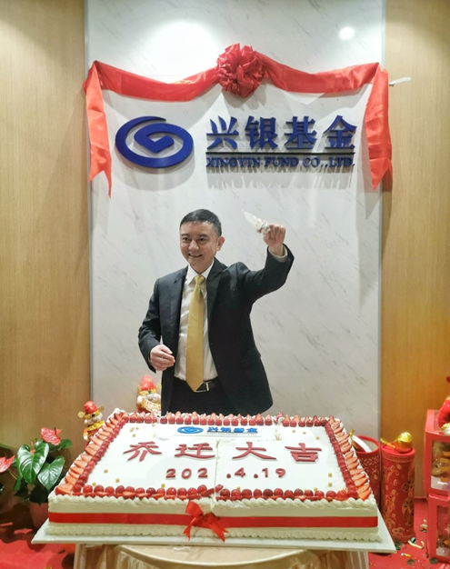 中午11时30分,乔迁仪式正式开始。兴银基金董事长张贵云代表公司揭牌,发表致辞并切开喜悦的祝福蛋糕。当红色幕布被缓缓拉开,崭新的兴银基金Logo正式亮相,伴随着喜庆的花炮声声响起,也预示着兴银基金的红火未来。张贵云董事长表示,在新的场地,希望公司有新发展,新目标和新精神,也期望公司全体员工同心协力,以奋斗之名开创兴银基金崭新的未来。