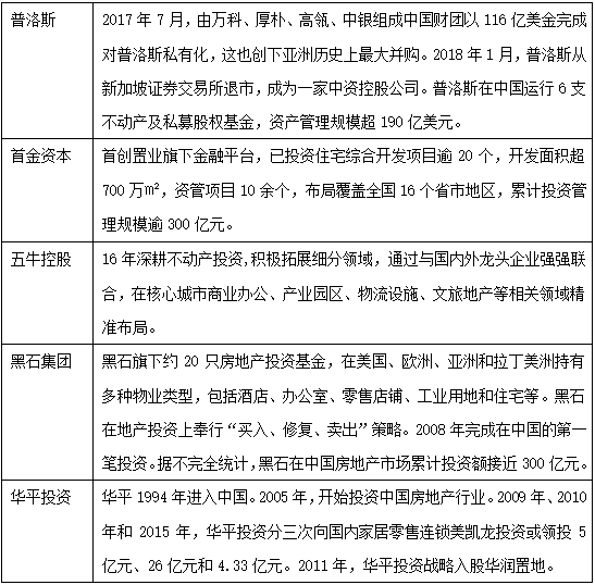 从目前市场来看,地产基金主要玩家包括内资和外资,外资基金发展时间相对较长,主要以持有类项目为主;内资基金主要分为开发商背景、金融机构系、PE背景等机构,但这些机构往往受限于资金期限,绝大多数以机会型开发类项目为主。