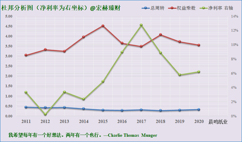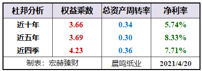 晨鸣纸业杜邦机构:杠杆较高+个位数的净利率+较低的周转率。