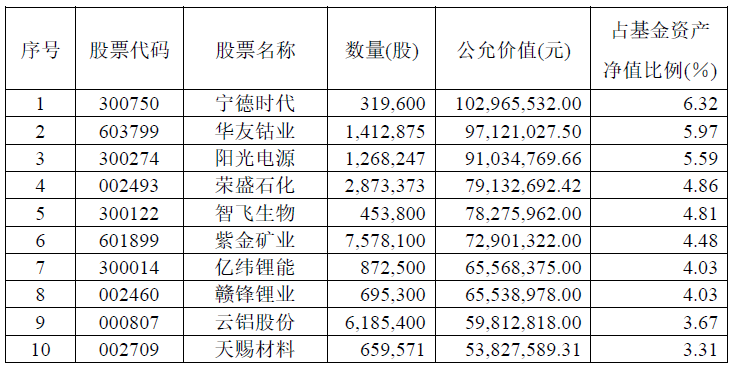 前十大重仓股