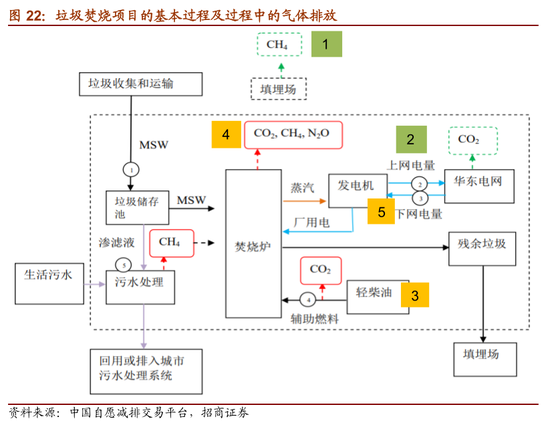 ④焚烧炉内垃圾燃烧导致的N2O和CH4排放;