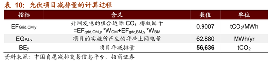 EFGrid,CM,y = 在y年,利用“电力系统排放因子计算工具”所计算的并网发电的组合边际CO2 排放因子(tCO2/MWh),可理解为该项目每生产1MWh电力产生的碳减排量。