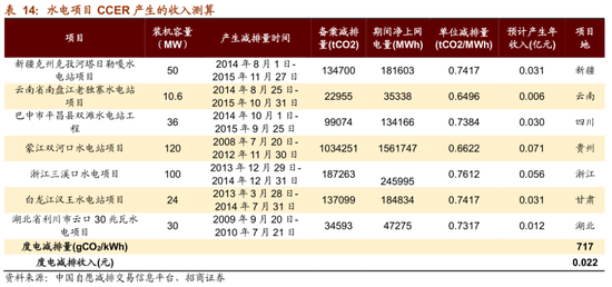 ✔水电:通过出售CCER,水电项目每上网一度电可增收0.022元,可以每年贡献5%-8%的收入弹性。