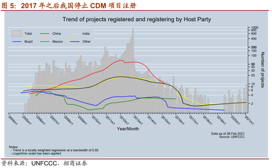 ✔ 衰落阶段(2012-2017年):2017年之后中国停止CDM项目注册