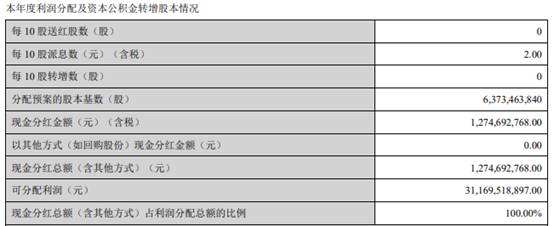 温氏股份2020 年度权益分配预案是以 2020 年 12 月 31 日公司总股本63.73亿股为基数,向全体股东每 10 股派发现金 2 元(含税),合计派发现金12.75亿元。