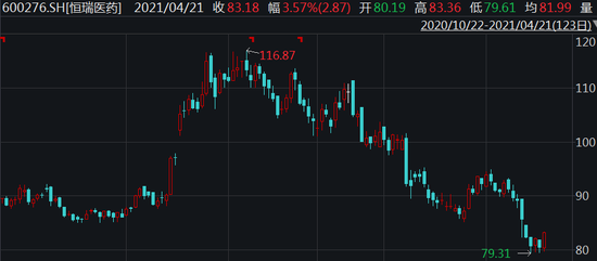 近日,江苏恒瑞医药股份有限公司(下称恒瑞医药,600276.SH)股价连续下跌。截至4月21日,其股价最低跌至79.31元/股(不复权,下同),较今年峰值116.87元/股,下挫超30%。