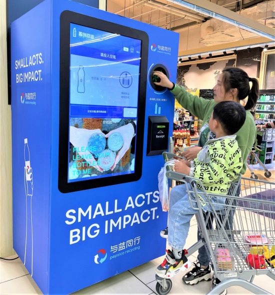 活动期间,百事的“PepsiCo Recycling与蓝同行”智能回收机在永辉重庆生活广场店、福州黎明店惊喜亮相。用户扫描二维码,投放塑料瓶,即可参与空瓶回收行动,获得“保卫值”。同时,太太乐也在永辉北京、上海指定门店投放软包装塑料回收设备。通过塑料回收再生,减少白色污染,助力循环经济。