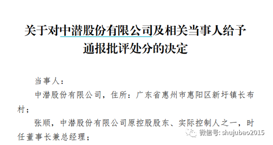 今日中午,在股价继续重挫的同时,深交所对中潜股份及相关当事人给予通报批评处分。因公司实控人等未能恪尽职守、履行勤勉尽责义务。
