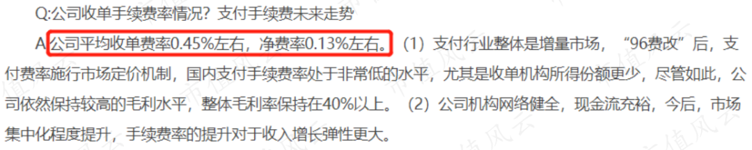 从拉卡拉在2021年2月末对机构投资者调研的回答来看,拉卡拉的平均收单费率约为0.45%,平均收单净费率约为0.13%。