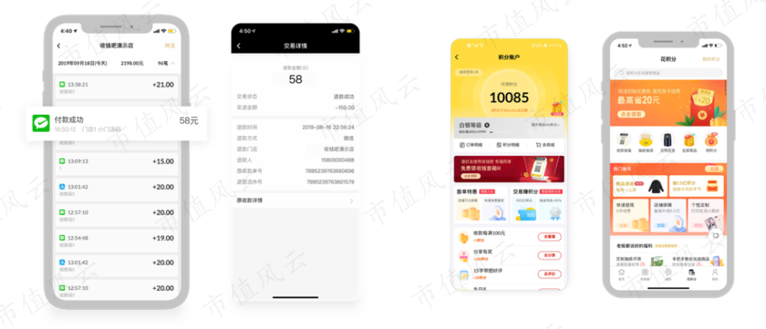 (“收钱吧”APP在支付收单功能以外提供的积分管理、自动对账及报表生成等功能,来源:收钱吧官网)