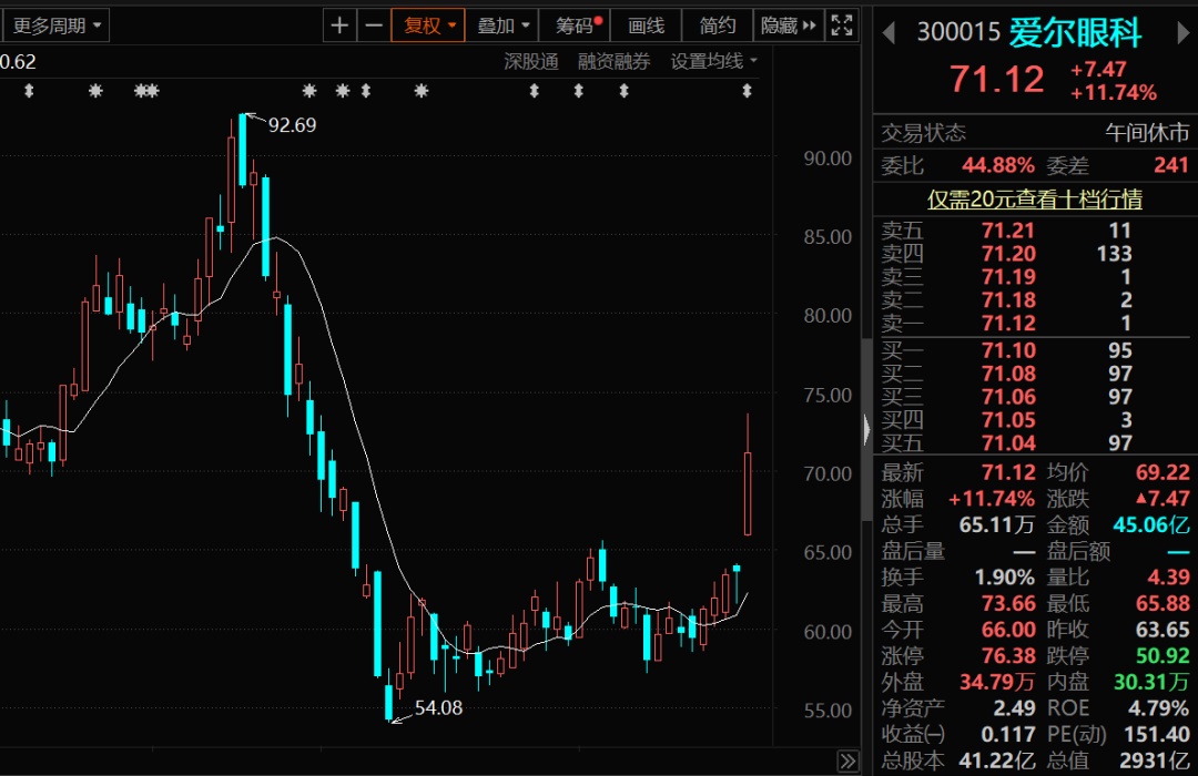 爱尔眼科也公布一季度实现营业收入35.11亿元,同比增113.9%,净利润4.84亿元,同比大增509.88%。爱尔眼科早盘也放量高开高走,一度上涨逾15%,半日成交超前一交易日全天成交的1倍多。同样,融资客本周事先融资净买入2.22亿元潜伏,等待业绩利好兑现。