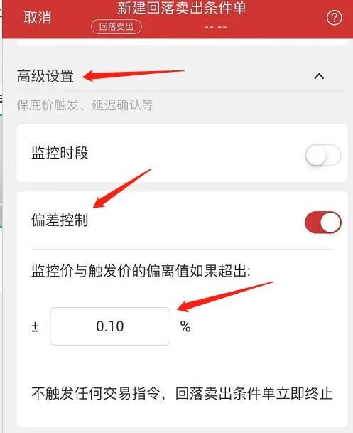 为了防止可转债价格大幅跳水带来的损失,我们可以使用“偏差控制”,将监控价与触发价的偏离值设置为超过正负0.1%不触发任何指令,这样可以避免低价卖出。