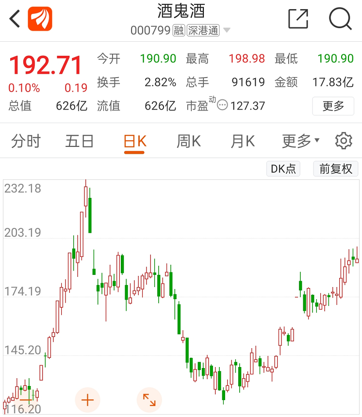 此前,酒鬼酒便是受超预期的业绩刺激,股价连续飙涨,更是引领白酒板块集体反弹。4月1日,酒鬼酒预告,今年一季度净利润2.5亿元至2.7亿元,同比增长160% -181%,次日直接一字开盘,截止26日收盘,累计涨幅达22%。