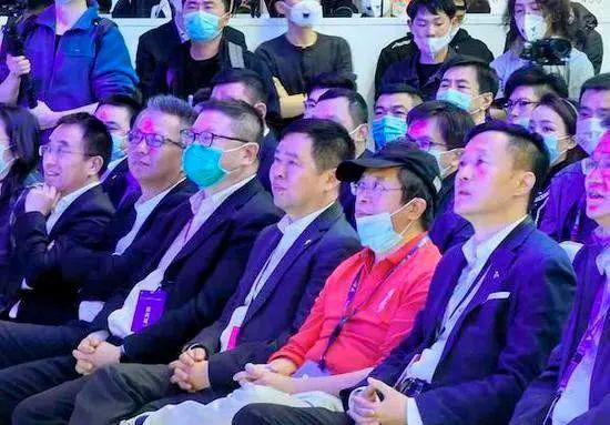 4月19日,穿红色上衣的周鸿祎现身2021上海车展哪吒汽车展台活动