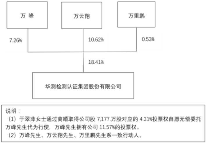 万峰先生,中国国籍,无境外居留权,1969年生,研究生学历,资深管理咨询师,英国IRCA注册主任审核员。2003年参与筹建华测公司,2004年7月起担任副总裁;2007年8月起任本公司董事长,2010年8月、2013年8月、2016年8月、2019年12月获得连任。