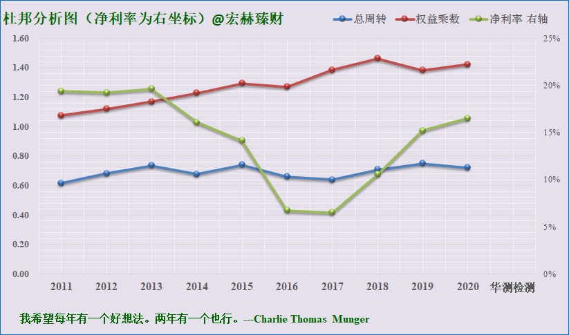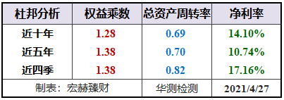 宏赫臻财建议关注未来杜邦指标趋势呈现:【低杠杆或适度杠杆(1.2-3)+周转率接近或大于1且有向上趋势+稳健增长的中高净利率>15%】