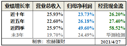 华测检测上市以来市值由38亿增至当前的538亿,11.5年期间年均复合收益率为26.08%。截止当前评测日近五年年均复合收益率为46.55%。