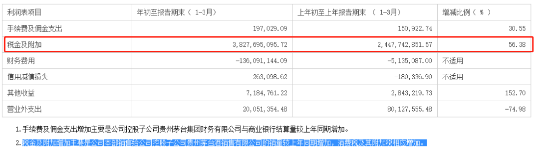 回溯当年的行情会发现,在当年一季报放出来之后,茅台的股价都出现了20%-50%不等的杀跌。那么,今年会咋样呢?这可能要从茅台的业绩失速的原因说起。根据一季报,贵州茅台业绩增速骤然下降的一部分原因可能与税收有关。1-3月,该公司上交的税金及附加比去年同期足足多了14亿元,高达38亿元。税金及附加增加主要是公司本部销售给公司控股子公司贵州茅台酒销售有限公司的销量较上年同期增加,消费税及其附加税相应增加。若加上这14亿利润,一季度的业绩增速也能达到16%。
