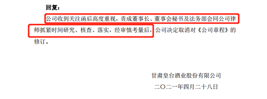 在申请了一次延期回复深交所《关注函》后,4月27日晚间,皇台酒业(维权)发布了对关注函的回复。