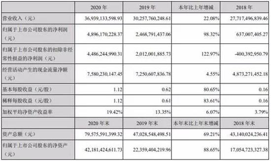 近日,蓝思科技发布的2020年年度报告显示,公司实现营业收入369.39亿元,较上年同期增长22.08%;归属于上市公司股东的净利润48.96亿元,同比增长98.32%。