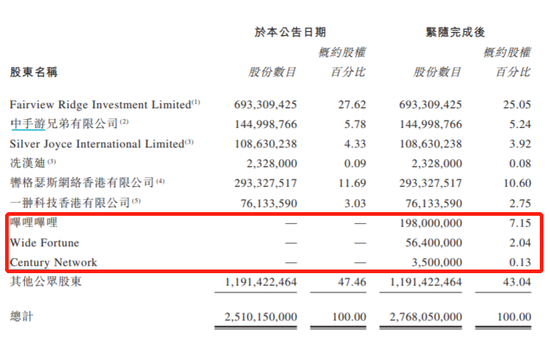 本次配售完成后,哔哩哔哩将持有公司7.15%的股份,合生创展前董事局主席大儿子朱一航持股2.04%。