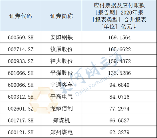 而在应付票据及应付账款方面,有34家豫股应付超过10亿元。其中,安阳钢铁、牧原股份、神火股份、平煤股份的应付超过100亿元。