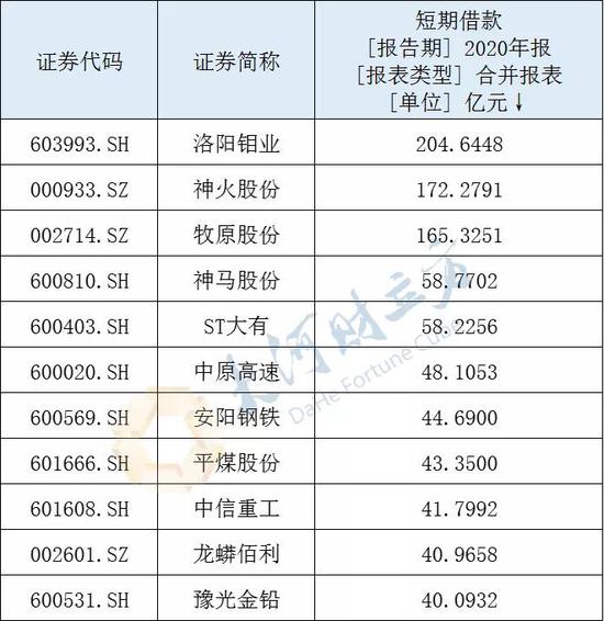 从年报数据来看,有11家豫股的短期借款超过40亿元。其中,牧原股份、洛阳钼业和神火股份的短期借款超过100亿元。