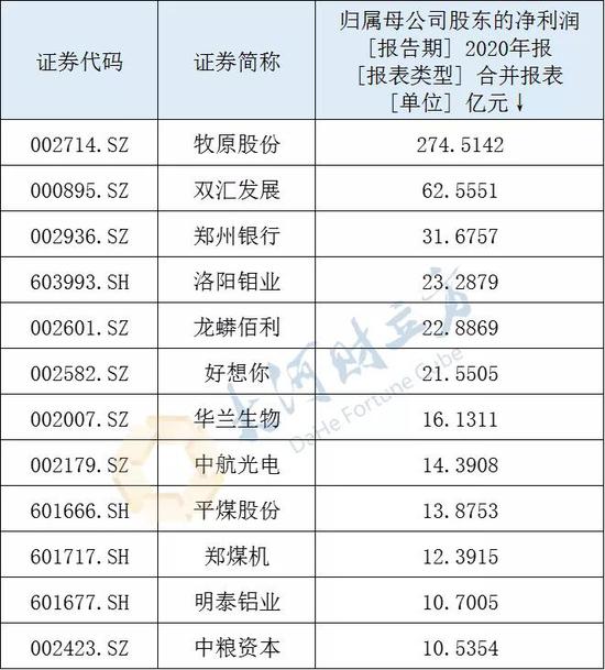 根据已披露的年报数据来看,2020年,河南89家A股上市公司共实现净利润531.94亿元。从整个豫股板块的情况来看,2020年,河南共有12家A股上市公司的净利润超10亿元。