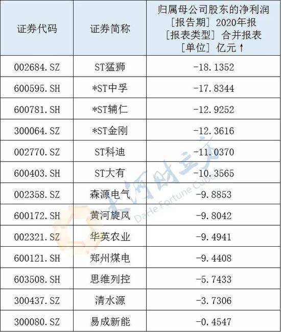 Wind数据显示,2020年河南共有13家上市公司出现亏损,有6家上市公司亏损额度超10亿元,其中ST猛狮的亏损额度最大,达到18.13亿元。