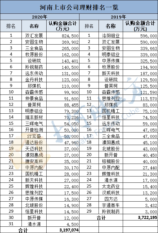 据统计,2020年河南共有31家上市公司购买理财产品,持有数量合计395个,认购金额合计达319.7亿元。