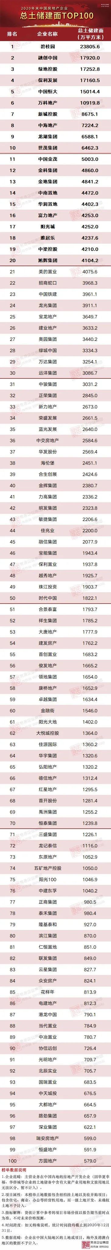 据克而瑞数据,截至2020年末,总土储货值TOP100房企的货值总量达到45.9万亿元,同比上升4.4%。货值百强门槛达到899亿元,同比上涨11%。