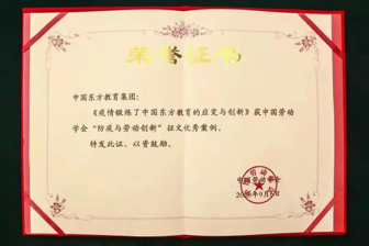 新冠肺炎疫情对职业教育的发展造成了影响,面对挑战,中国东方教育一手抓疫情防控,一手抓教学与管理创新,取得了16余万名师生职工零感染的显著成效,并在技能线上授课、职教OMO新模式创新、线上班主任管理等方面进行探索、实践和创新。中国东方教育为后疫情时代经济重回正轨的新发展增加了活力,也因此被中国劳动学会评为“防疫与劳动创新”征文优秀案例。
