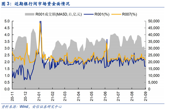 银行间资金面维持宽松。9月24日,R007和DR007均价分别为2.16%和2.07%,较前一周变化-42bp和-19bp; R001和DR001均价1.68%和1.67%,较前一周变化-53bp和-55bp。近一周银行间流动性整体维持宽松。