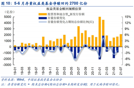 通过公募基金为市场带来的增量资金实际相对有限,存量博弈的格局或将持续。据证券投资基金业协会推算的7月存量基金净赎回规模约1380亿份,近三个月合计约4000亿份。去年重仓消费而表现优异的大型基金今年以来表现一般,近一个月回撤普遍在15%左右,预计短期赎回压力仍存。