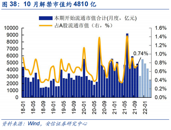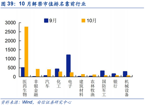 10月解禁规模预计为4810亿元,主要集中与医药(约2770亿)、非银(427亿)、汽车(405亿)行业,解禁压力较上一月小幅上升,处于历史相对高位。