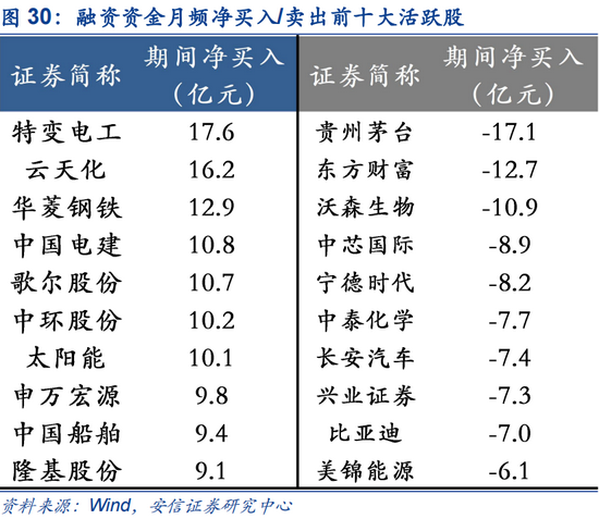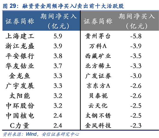融资资金对低估值周期板块的流向出现分化。以周频看,上海建工、浙江龙盛、平安银行、华友钴业、金龙鱼等获净流入居前;贵州茅台、万科A、西藏矿业、北方稀土、广发证券遭净流出居前。云天化、特变电工、隆基股份、金龙鱼连续多周获净买入居前;贵州茅台、广发证券等连续多周获净卖出居前。