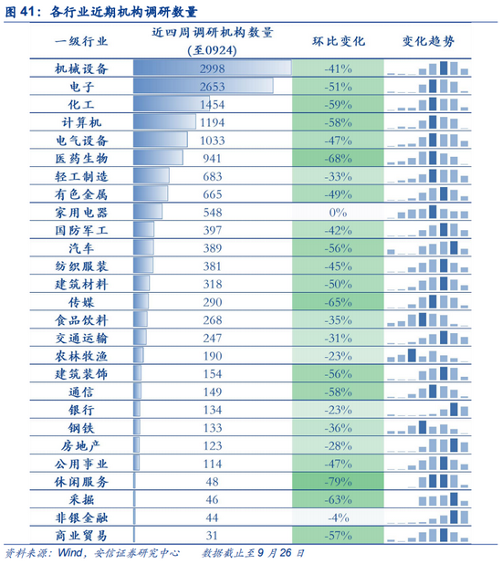 近四周来看,电气设备(约192亿,配置型资金为主)、医药(约101亿,配置型资金为主)、计算机(约37亿,配置型资金为主)、电子(约36亿,配置型资金为主)净流入居前;钢铁(约-52亿,交易型资金为主)、银行(约-45亿,交易型资金为主)、非银(约-39亿,交易型资金为主)净减持居前。
