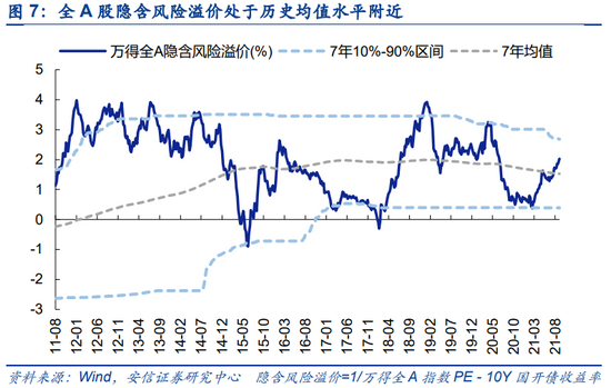 A股隐含风险溢价升至均值上方。A股隐含风险溢价较上周上升0.02%。“沪深300股息率-余额宝7日年化收益率”较上周下降3.7bp。