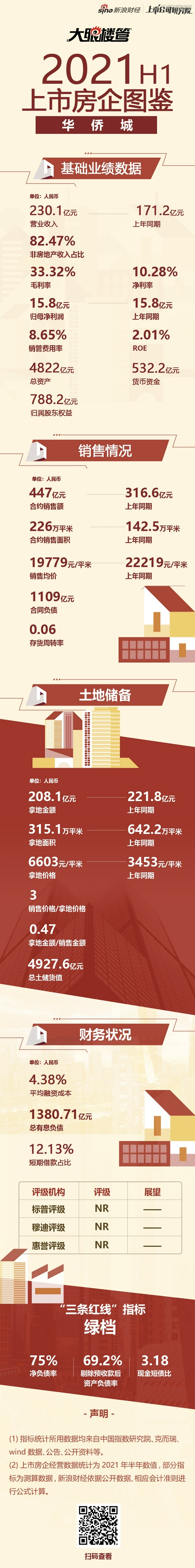 本期新浪财经梳理华侨城今年以来的经营业绩表现,并与去年同期数据、主流上市房企经营数据均值进行比较。主要从基础业绩数据、销售情况、土地储备、财务状况4个方面介绍华侨城上半年的业绩。