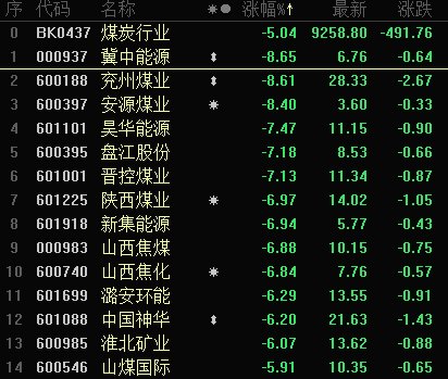 期货市场大幅杀跌的同时,A股市场周期板块表现也较为颓靡。今日煤炭板块大幅杀跌,板块指数跌幅居两市之首,冀中能源、兖州煤业、安源煤业跌超8%。主营纯碱的山东海化、远兴能源跌超9%。