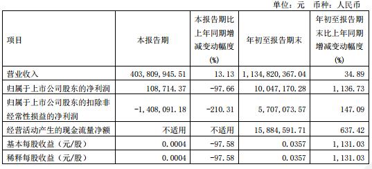 10月25日晚间,凤凰光学发布2021年第三季度报告,公司前三季度营业收入11.35亿元,同比增长34.89%;净利润1004.72万元,同比增长1136.73%。其中,第三季度净利润10.87万元,同比下降97.66%。