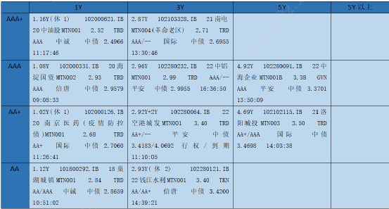 2022年2月11日一级中票发行结果